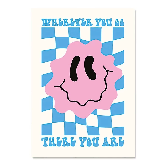 ฮิปปี้กราฟฟิตีผ้าใบภาพวาดแขวนผนังตกแต่งบ้าน รูปยิ้ม